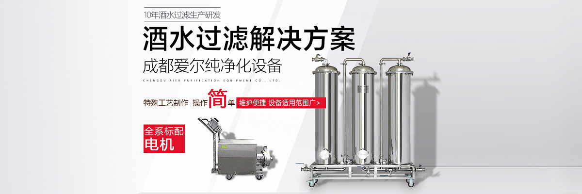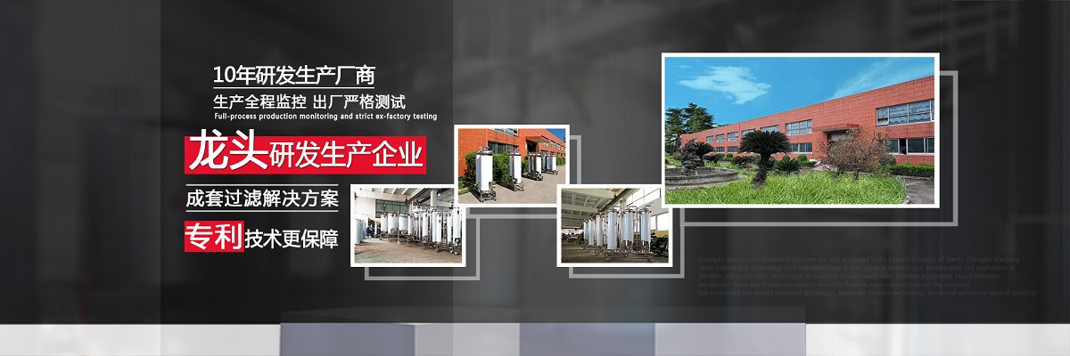 成都愛爾純凈化設備有限公司,坐落于美麗的天府之國,成都市溫江區海峽科技園工業(yè)區,專業(yè)從事于過濾、凈化技術的研發(fā)應用,產品有保健酒過濾設備、白酒過濾設備、白酒凈化設備、水凈化設備等,公司引進世界先進過濾分子技術,結合專業(yè)技術人員資深多年實踐經驗,解決酒類、飲水類后期處理難題。 業(yè)務涵蓋,酒類過濾:除混濁沉淀,澄清處理、除苦味,異雜味,新酒催熟陳化處理 、除塑化劑、固形物、雜醇油、甲醇及各類含量超標后期處理。 水類:軟水、純凈水、礦泉水、飲料等凈化處理。用心為客戶提高生產效率、提高產品質量、降低生產成本、環(huán)保減排而開發(fā)創(chuàng)新,堅持奮斗。 公司至誠每一位客戶,“誠信服務,客戶至上”為宗旨,為客戶要求,用心凈化每一點滴,我們都將以精準的數據化設計、嚴格的設備制作質量把關、快捷專業(yè)的安裝調試以及周到的售后服務,解決客戶生產過程中遇見的各種酒、水后期處理的技術難題。